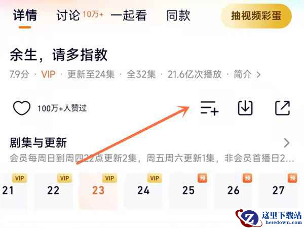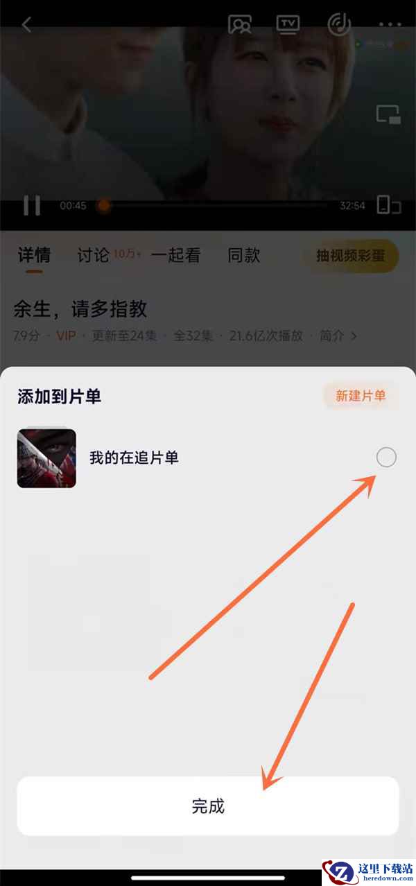1、打开腾讯视频app,在视频界面点击添加到片单图标。