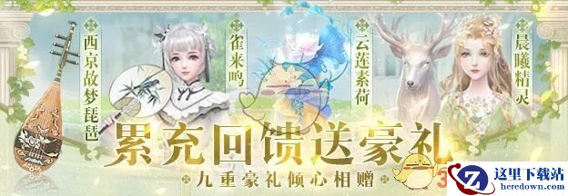4月11日5:00点~4月25日2:00,累计充值648可获得全新套装【雀来鸣】、【晨曦精灵】、手持【西京故梦琵琶】以及披风【云莲素荷】等超多惊喜奖励!