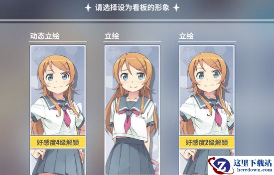 在看板形象设置界面中可以看到,更多的立绘形象需要通过好感度提升解锁。