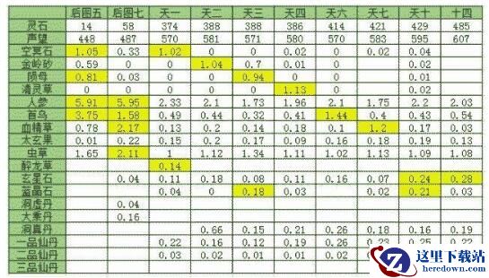 其中清灵草玄星石蓝晶石这种人界很少见,但是到天上就会比较多了,清灵草是天4的特产,寻龙会有一些,另外大能遗府合体期副本会送,其他基本就是天上了。玄星石天3很多,是炼丹炉和炼器炉的主要材料。天上副本材料产出见下图。