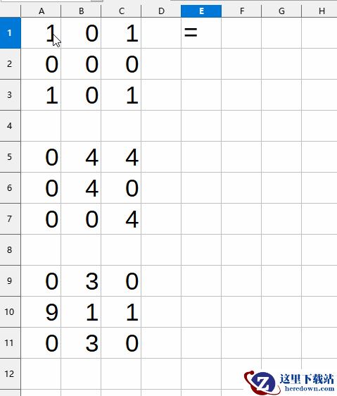 第1部分,给可交互的方块标1,其余标0。可交互方块下面是紫色。