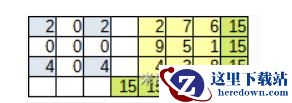 修改蓝色部分,让绿色的部分的数字全部变成15,并且黄色部分的数字各不相同。