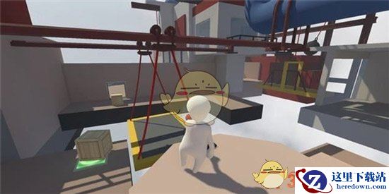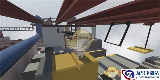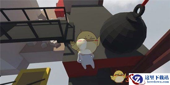 把铁球从平台上推下去,铁球的重量会把黄色吊桥拉起来。这里提一下,Bob可能坠落的场景内坠落下去的话也不要紧,Bob自由落体两秒后会重新摔到当前场景的储存点位置。