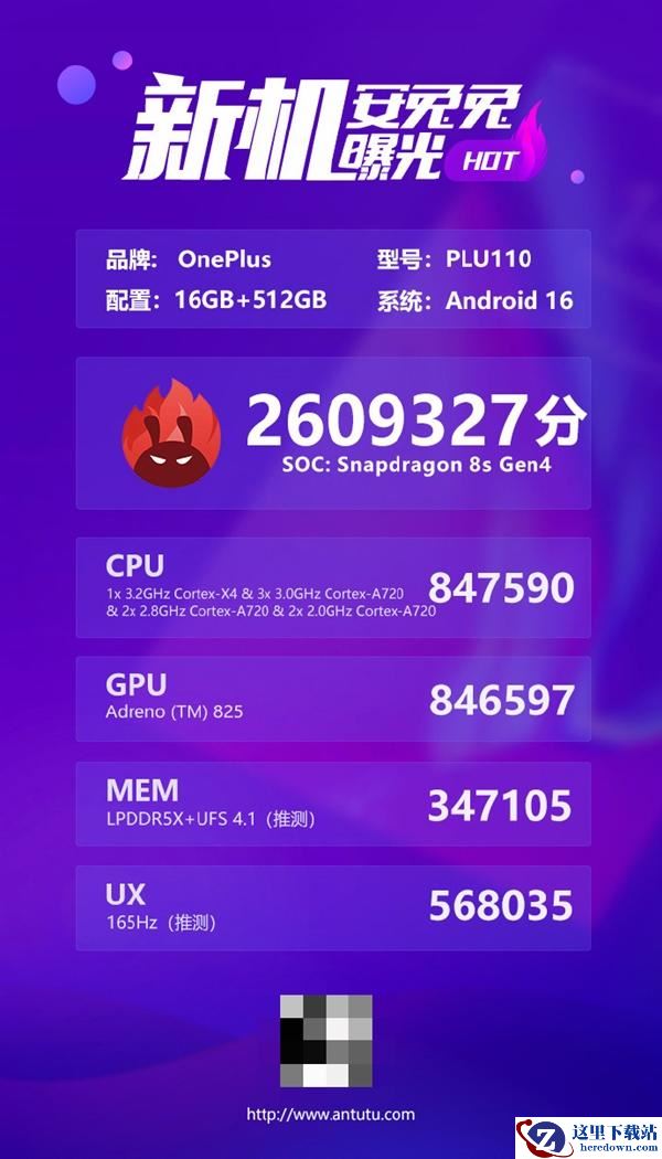 安兔兔跑分显示,一加Turbo 6将搭载骁龙8s Gen4,拥有16GB+512GB存储规格。