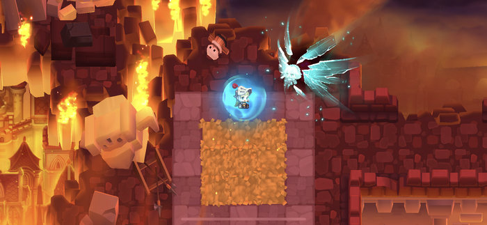 当然了,作为一款冠以“奇幻冒险”之名的游戏,“冒险”与“战斗”才是游戏的核心。游戏中设置了很多轻度的谜题,比如利用火焰引燃障碍物,清除出通往宝箱的道路;或者是推动箱子压住按钮,以解开前方关闭的大门等等。而当各个谜题结合在一起时,难度也会上升不少,为玩家带来一次小小的脑力风暴。