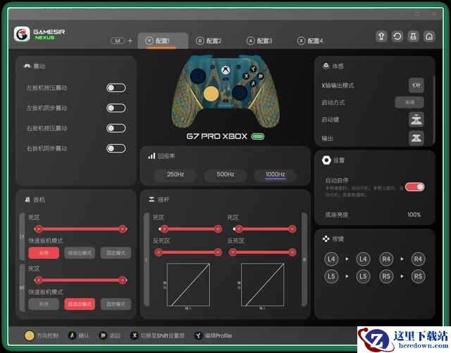 ▼而且它还支持通过软件调节零死区,这可是普通 Xbox 手柄都没有的功能。小鸡还专门给它配置了独立 ADC 芯片和专属算法,官方给出的数据是有线/无线双 1000Hz 回报率,参数相当漂亮。我自己在实际测试中也确实跑到了这个水平,这种高回报带来的跟手感,在需要极限反应的动作游戏时,真的非常加分。