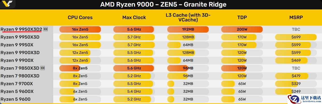 首先介绍Ryzen 9 9950X3D2的部分已知参数: