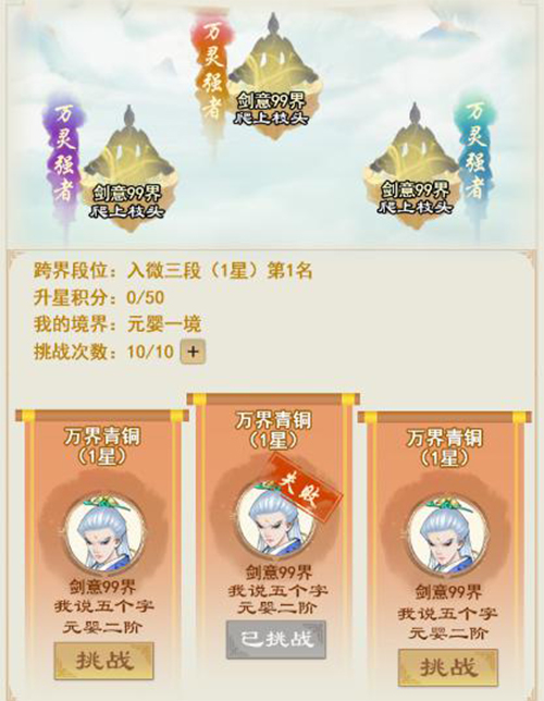 跨服灵界顾名思义,就是在原有灵界的基础上合并多个服务器而产生的灵界,玩家参与跨服灵界挑战可以赢得与最终排位相匹配的个人奖励与段位奖励,其中还包含可以在跨服商店中兑换各类珍稀道具的万界古币!