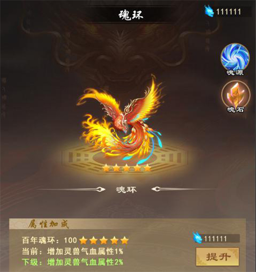 魂环系统可以以百分比增加灵兽的三维属性(气血、防御、攻击),但只有灵阶及灵阶以上的灵兽才可以激活魂环。激活魂环需要消耗数量不等的“灵值”,灵值可以在新副本“十万大山”中获取。