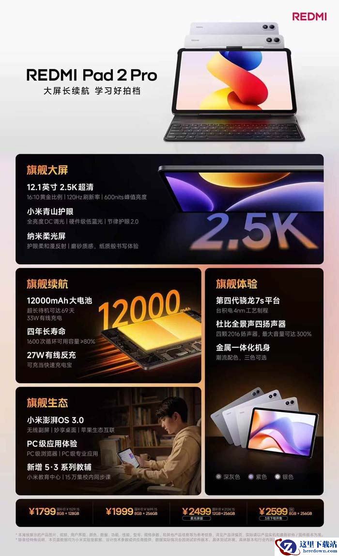 1月29日,Redmi正式推出并开售大屏长续航学习平板Redmi Pad 2 Pro,售价 1799 元起。
