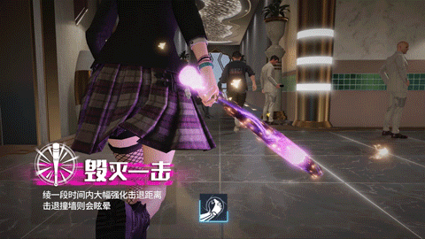 该技能发动后,绫可以快速向前冲刺,强力棒击遇到的敌人。冲刺途中可以小幅转向,如途中有门则会自动开门。
