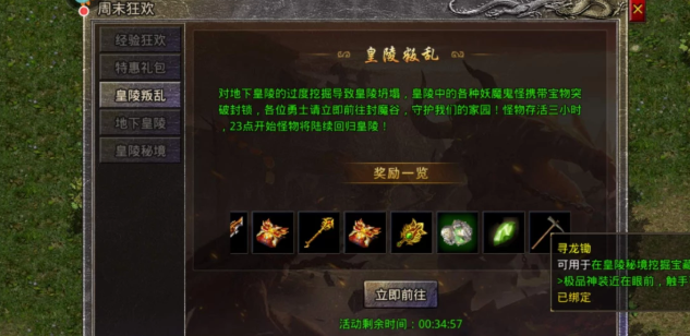 我们需要有摸金校尉称号才可以进入地下皇陵,一般来说打开火龙宝箱可以在所有奖励中随机抽取一个奖励,得到创造手札的几率还是比较大的。
