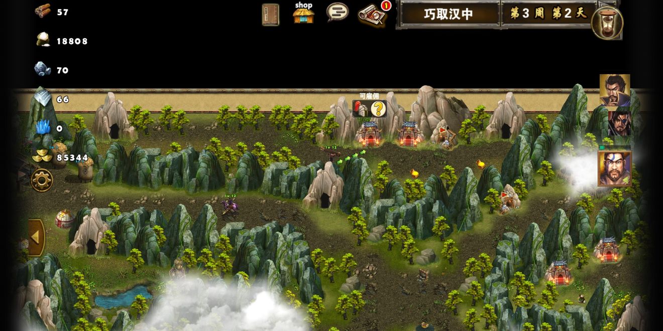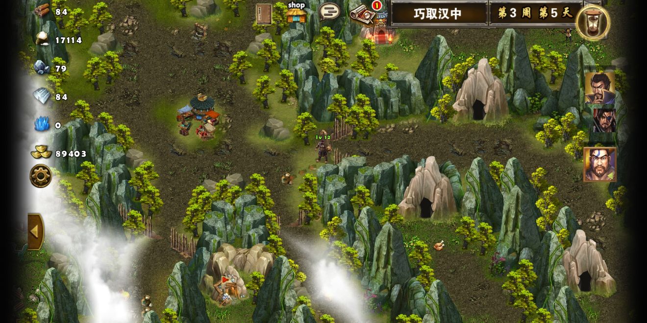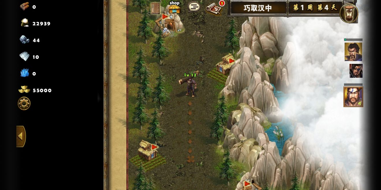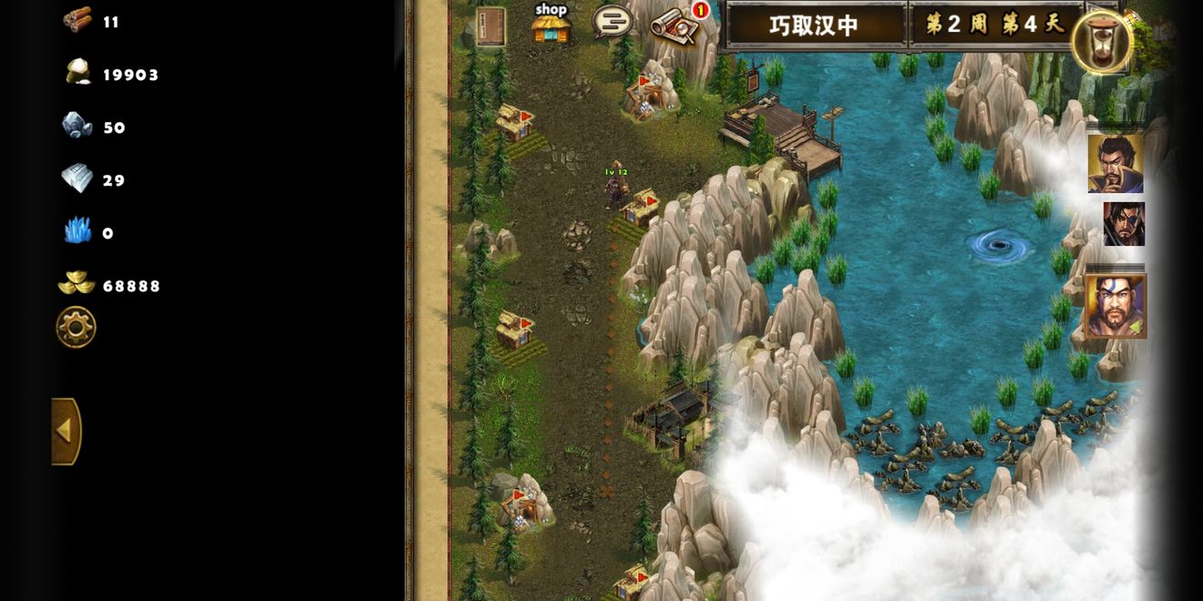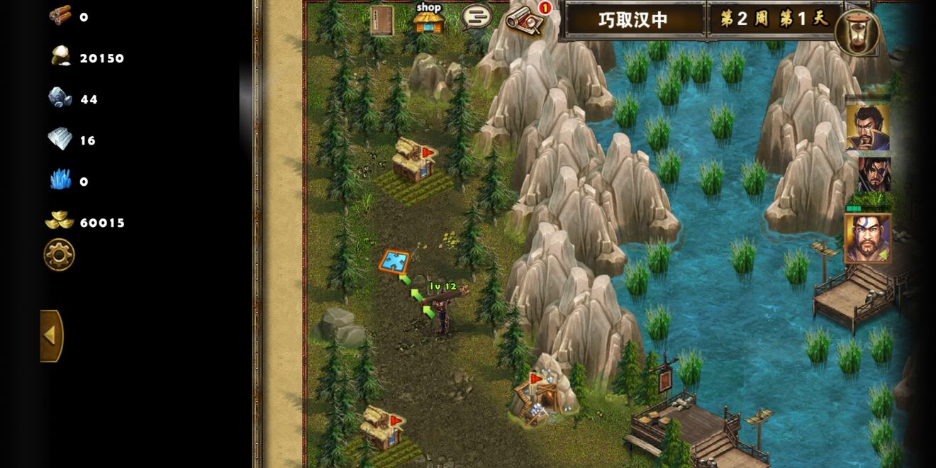 三周三四许诸招山贼,曹操在河入口过天,许诸那边右下角落有个资源别忘了捡