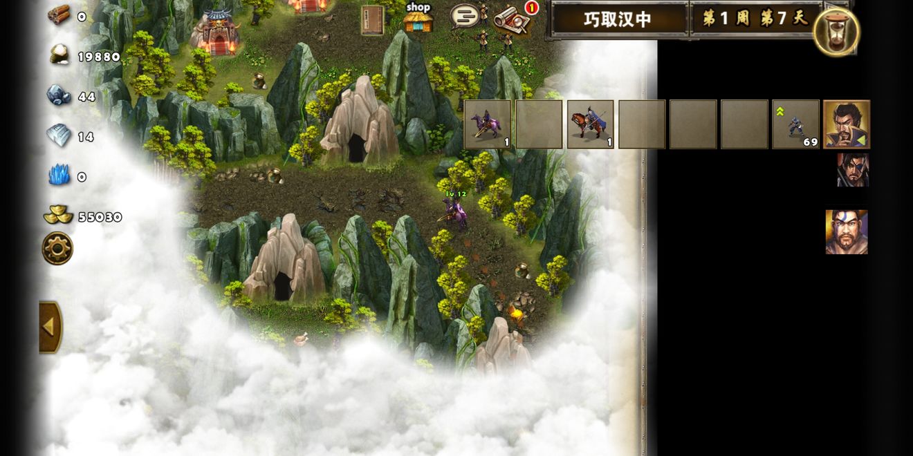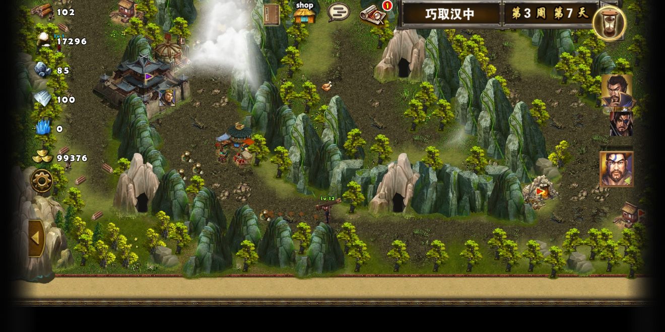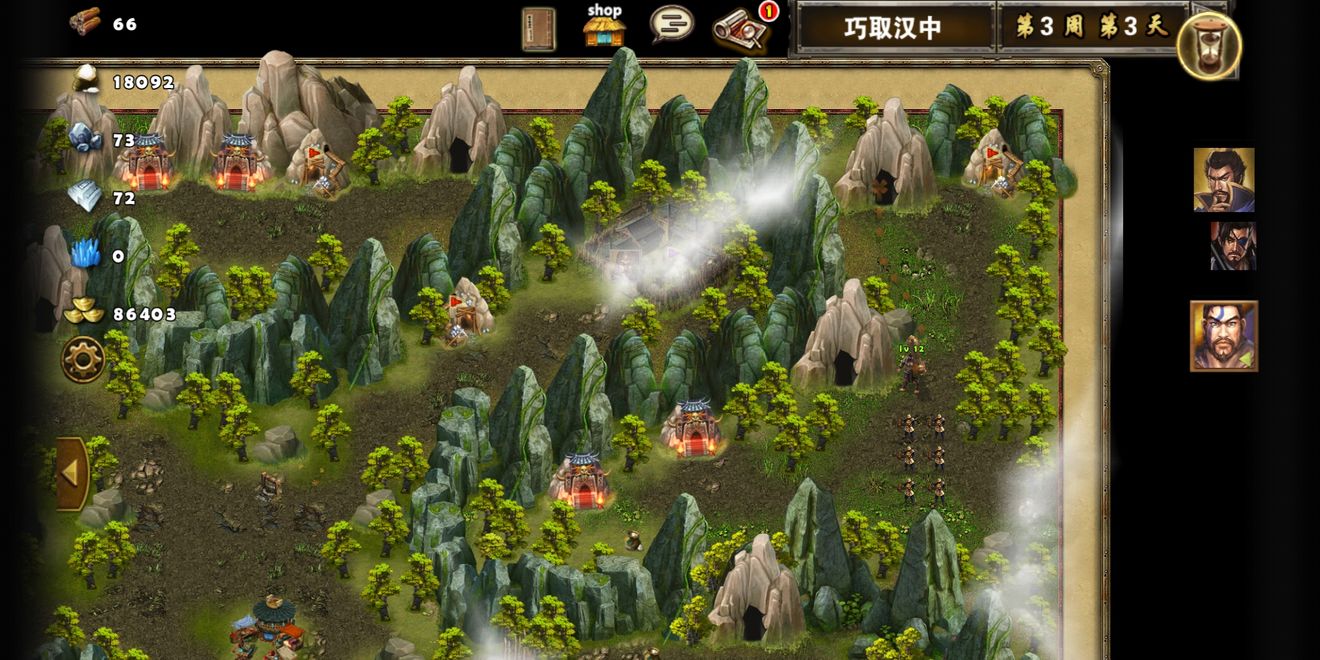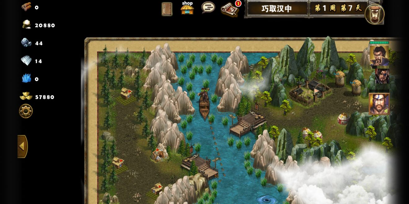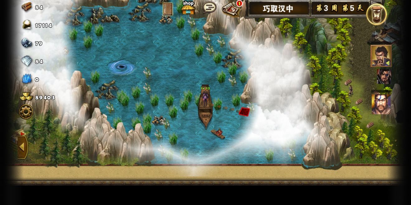 三周三四许诸招山贼,曹操在河入口过天,许诸那边右下角落有个资源别忘了捡