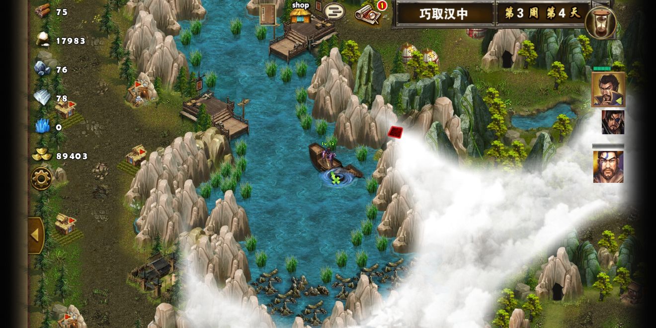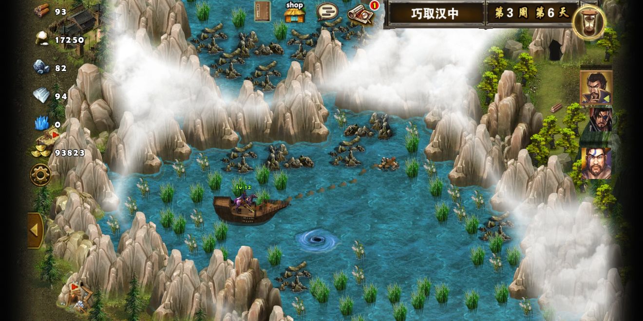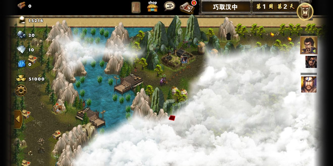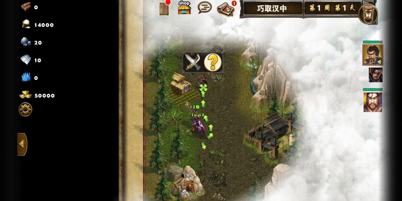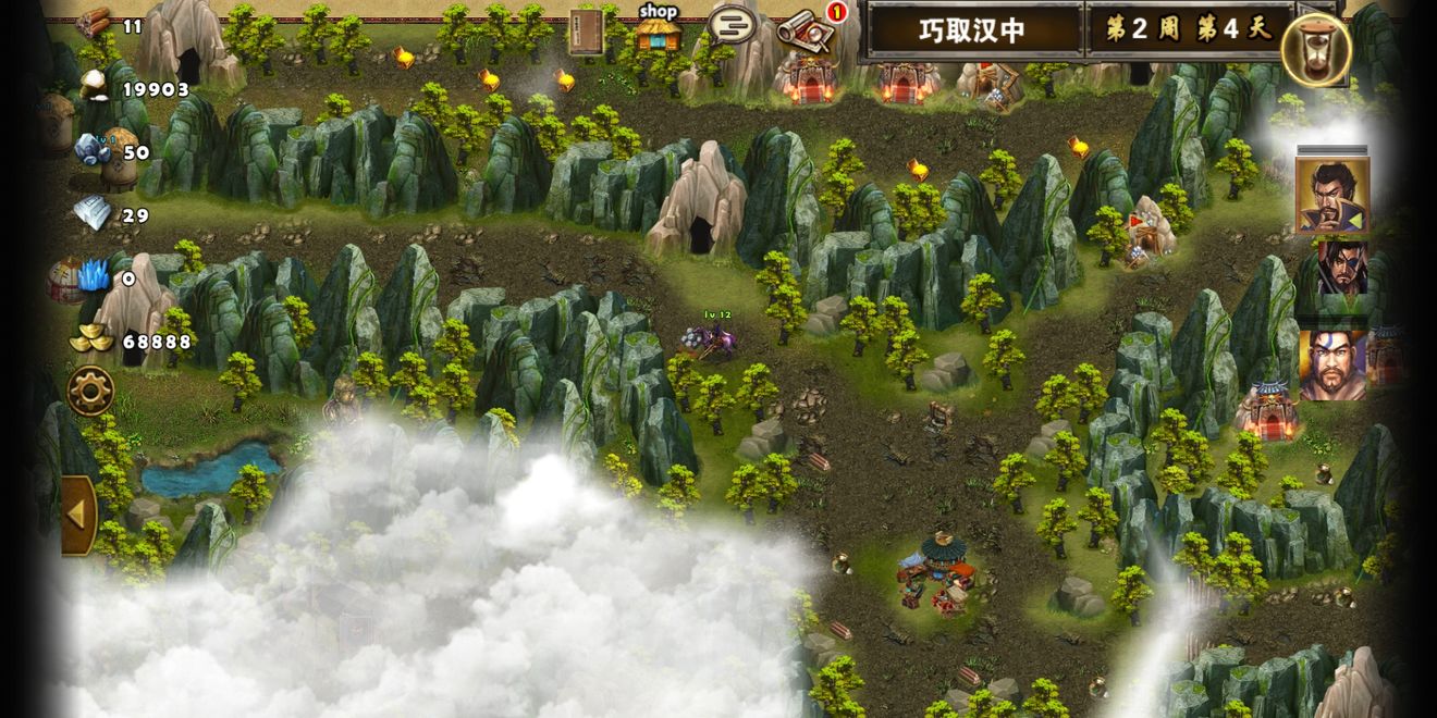 三周三四许诸招山贼,曹操在河入口过天,许诸那边右下角落有个资源别忘了捡