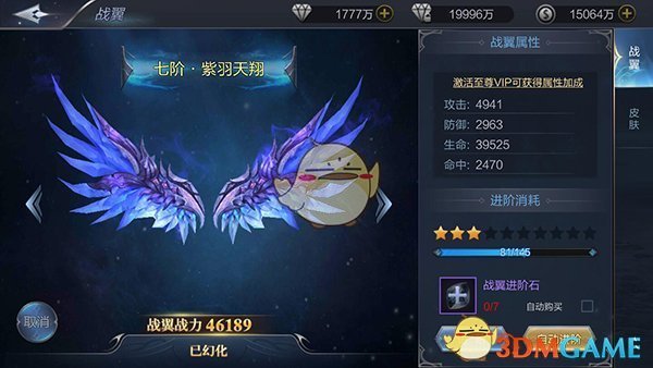 战翼通过使用战翼进阶石来提进阶