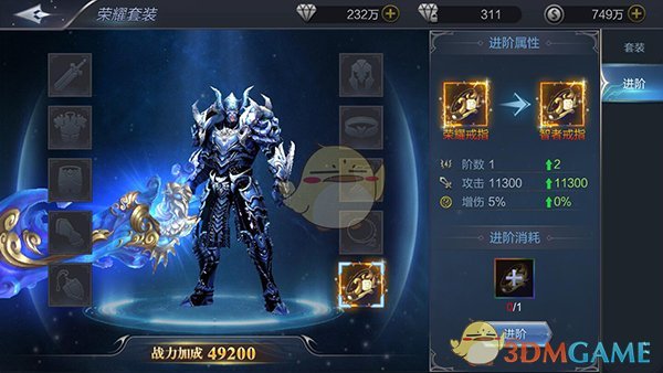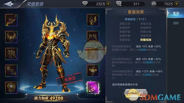 此外,玩家还可以用多余的荣耀装备来进阶相应部位的装备,提升装备的品质,获得更为高额的属性加成