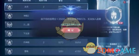 信用分低于350分是无法加入战盟的,也无法聊天。对玩一些玩家来说有影响,当影响并不大哈。再看看下面这张图片: