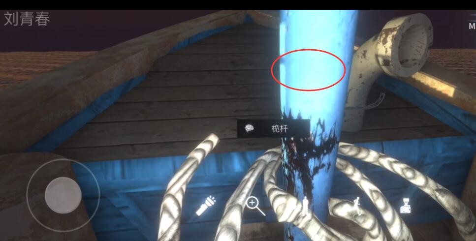 位置:看到在船尾上面的杆子之后,点击可以获得这个线索。