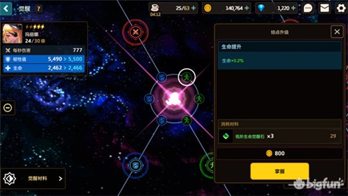 角色每一次进化升星都会解锁新的觉醒结点,所以星级越高角色的潜能上限也就越高。同时也会出现新的带有特殊能力的觉醒结点。