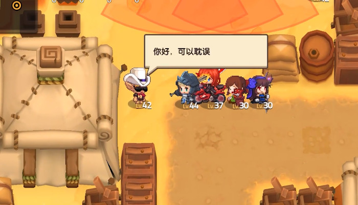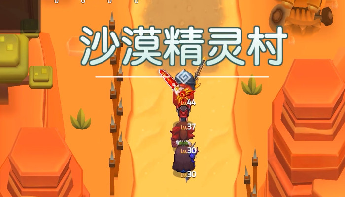 首先玩家需要点击第四章第二关,然后就会进入到沙漠精灵村这张地图,一直向下走就会获得篮球小将时装,可以装配在队伍的第一个角色,之后需要一直向上走,会碰到一个带白色帽子的npc,走到跟前与他简单交流后向右走,之后会看到在上面山洞口上有一个怪物在把守,走上前和其简单交流。