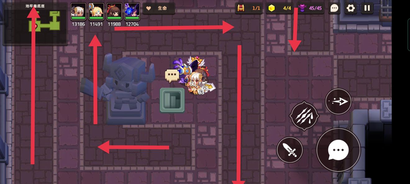 7-5上图所示位置从中间按顺时针方向沿着地板走就可以触发中间的雕像机关(沿着我上面图箭头走就行,反着走应该也行)