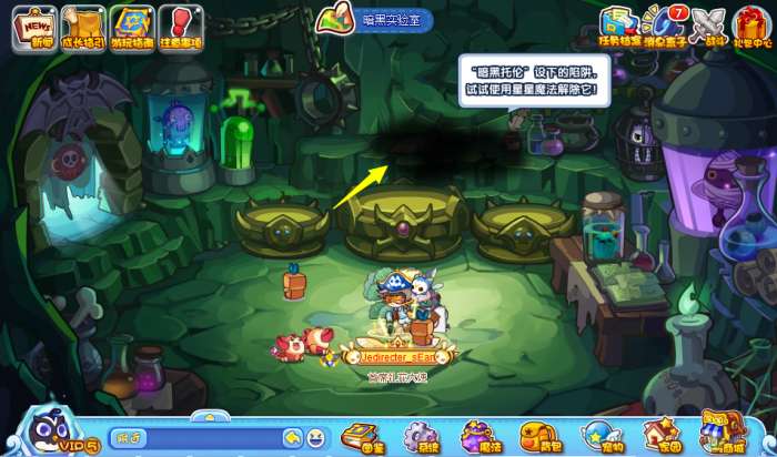 小洛克们根据途中所示的线索,自行前往洛克王国范围寻找,抵达场景后会发现有异样的黑色迷雾,用星星魔法可以解除: