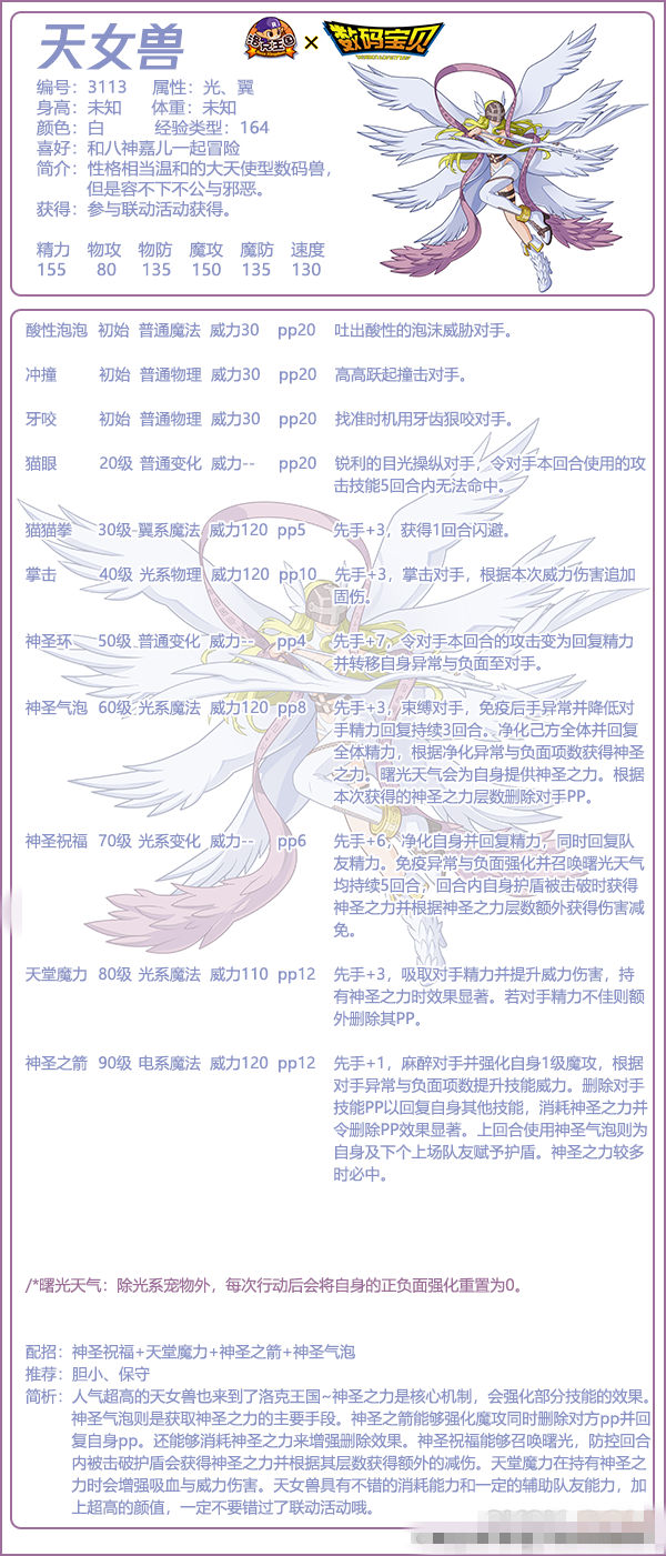 3、人气超高的天女兽也来到了洛克王国~神圣之力是核心机制,会强化部分技能的效果。