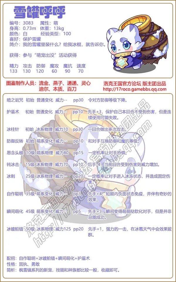 洛克王国游戏中雪罐呼呼是编号3083的萌属性宠物,可以通过参加【萌宠出没】活动得到雪罐呼呼。下面手游网小编就给大家带来了《洛克王国》雪罐呼呼技能表图鉴,技能表种族值可以让大家快速了解这个宠物各项信息,感兴趣的速来围观吧!
