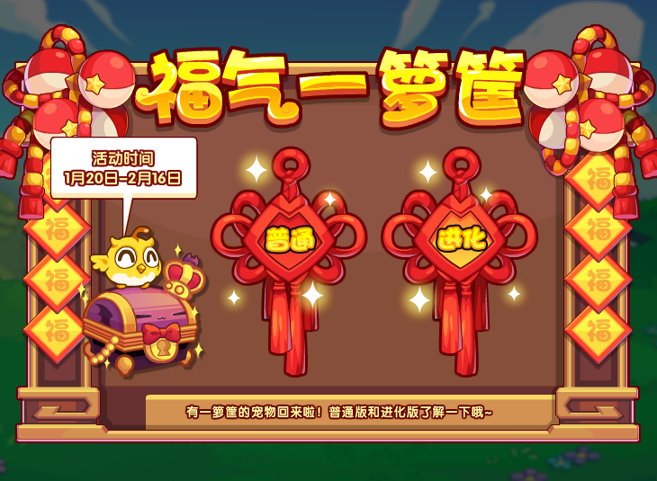 街边华灯初上,来和霓光迪莫一起,为大家制作好看的灯笼吧!制作足够的灯笼即可获得宠物:霓光迪莫。