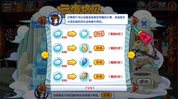 2.每天每个瀑布能拾取5次,挑战胜利可以获得白玉贝(可兑换任意所需贝壳)、概率掉落活动所需贝壳。