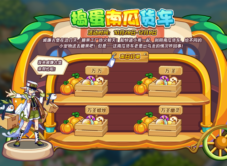 威廉古堡在这几天,糖果工厂热火朝天!和快递小哥一起,利用南瓜货车,给不同的小宠物送去糖果吧!但是……这南瓜货车老是出乌龙的情况咋回事!