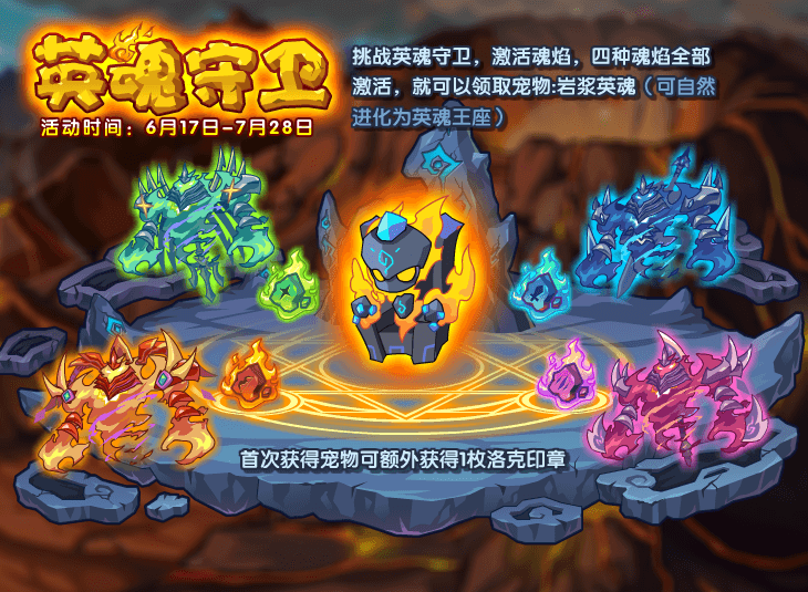 挑战英魂守卫,激活魂焰,四种魂焰全部激活,就可领取宠物。