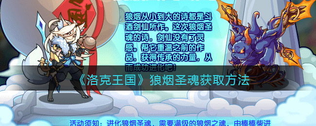 洛克王国游戏中很多小伙伴想知道,狼烟圣魂怎么获得呢?下面是小编给大家带来的《洛克王国》狼烟圣魂获取方法,感兴趣的小伙伴们一起来看看吧。