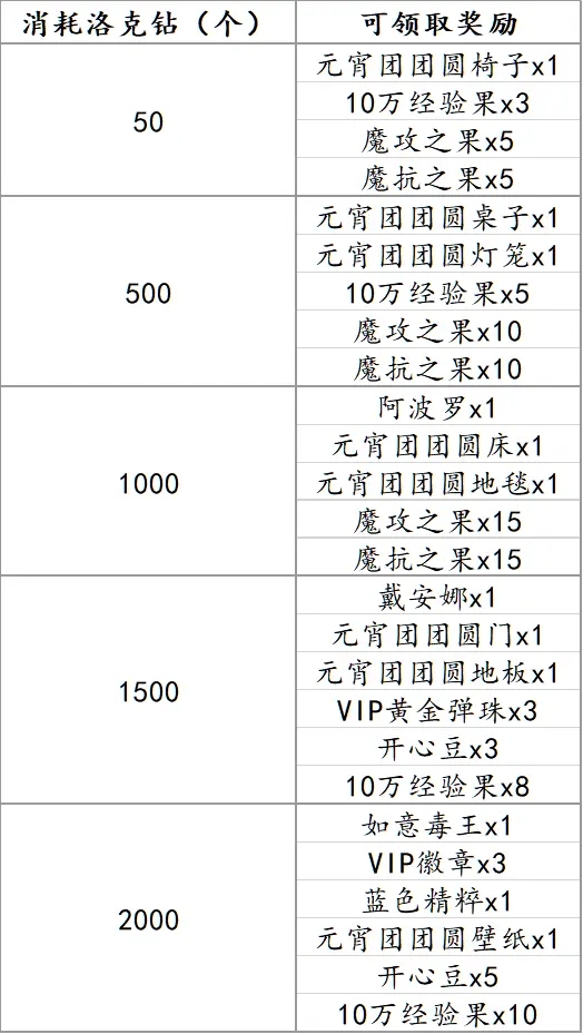累计消耗满足够洛克钻即可领取对应档位的奖励