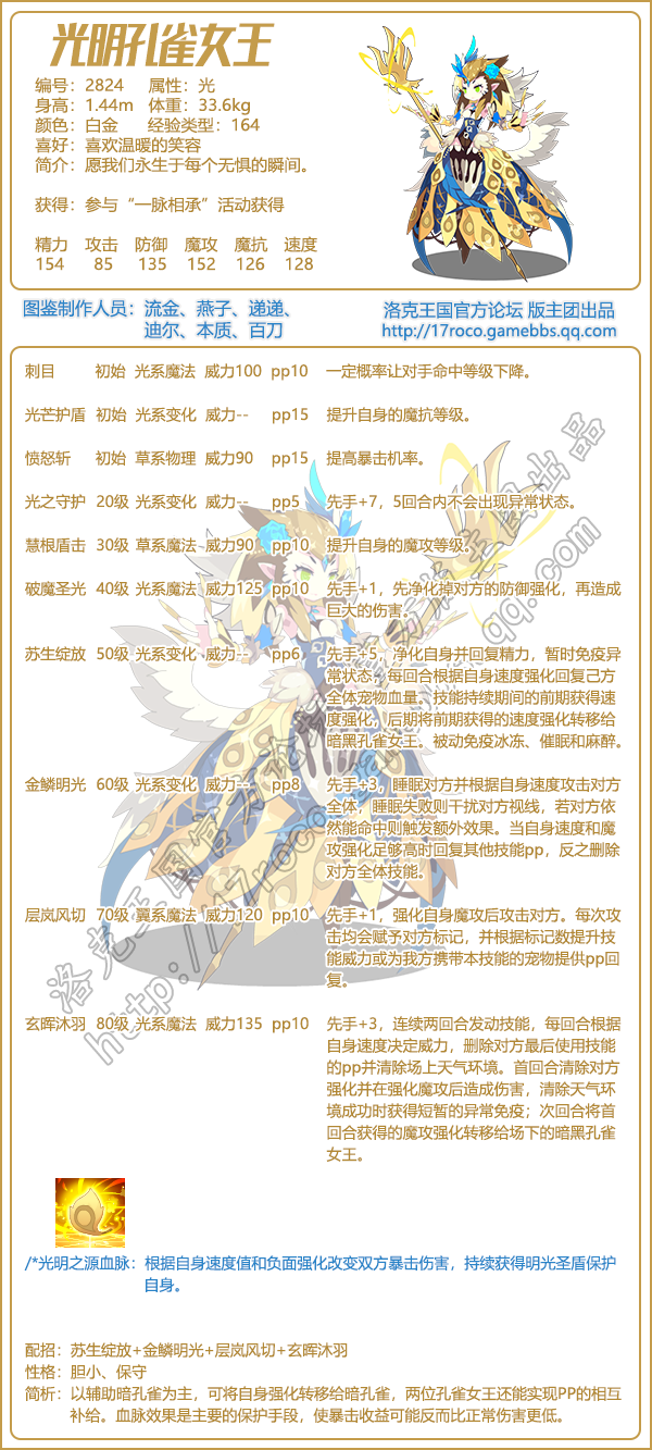 以上就是小编整理带来的《洛克王国》光明孔雀女王技能属性图鉴介绍,大家还喜欢吗?更多精彩内容,请点击关注手游网,小编将持续为您更新!