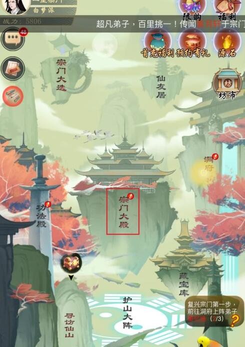 1、登录游戏后,点击宗门大殿