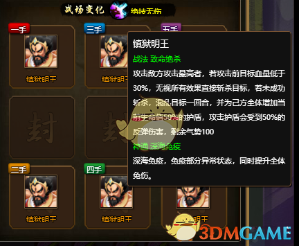 怪物3:这是本关的第二大难点!一是混乱,二是当前生命50%的护盾,这就是选酒鬼的原因。酒鬼免疫混乱,且第一回合大量的输出使所有怪血量大幅度降低,护盾值也会相应降低。又因战场变化为绝技无伤,所以还是得靠酒鬼的绝对伤害。
