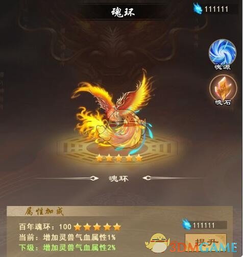 对应地,使用“兽魂”提升等级,“魂源”提升星级。