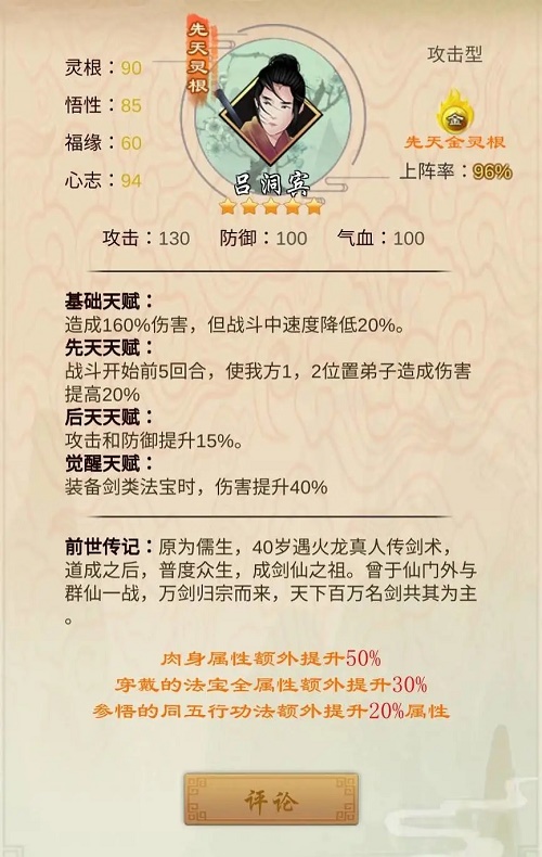 首先逍遥和吕洞宾都是红色先天灵根五星弟子,拥有高额的攻击属性加成。