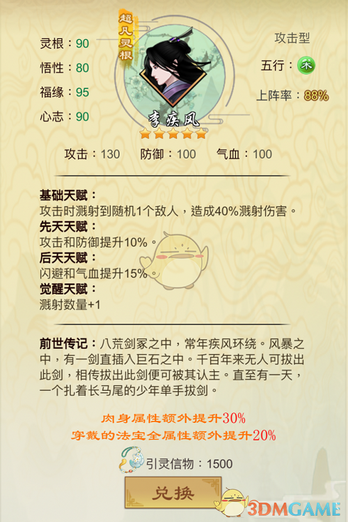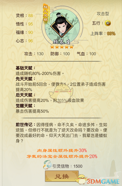 可以说他拥有全游戏中第二高加成的攻击伤害,但也可以说他是所有攻击型弟子中攻击伤害加成最低的。