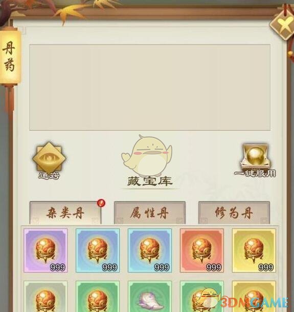 丹药/法宝都可以通过推图掉落、试炼古路与寻访仙山获取,同时丹药在坊市也可以购买,5星宗门解锁灵药峰与炼丹峰之后也可以自己产出。
