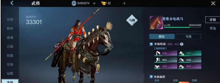 坐骑是可以提升武将战力的重要系统,一匹出色的坐骑在PVE副本以及赶路的时候都可以带来不小的帮助,不过坐骑在游戏内也是只能通过抽奖获取,建议大家先抽角色后期再去培养坐骑。