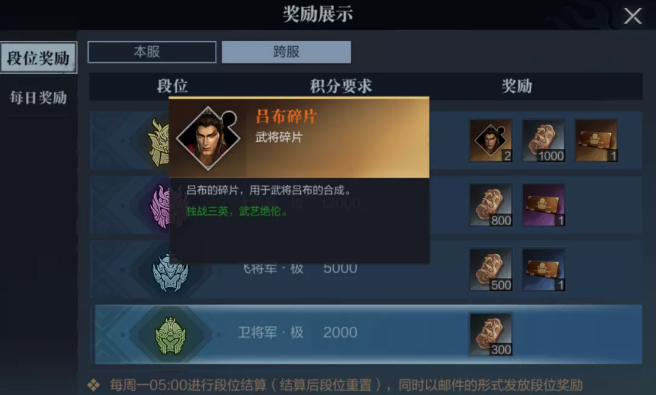 除了段位奖励之外,根据排名每日也会有相应的奖励,结算时间是每日21点。从第一名至前八千名,铜雀币、本服积分以及银币是必得奖励,排名越高奖励也就越多。