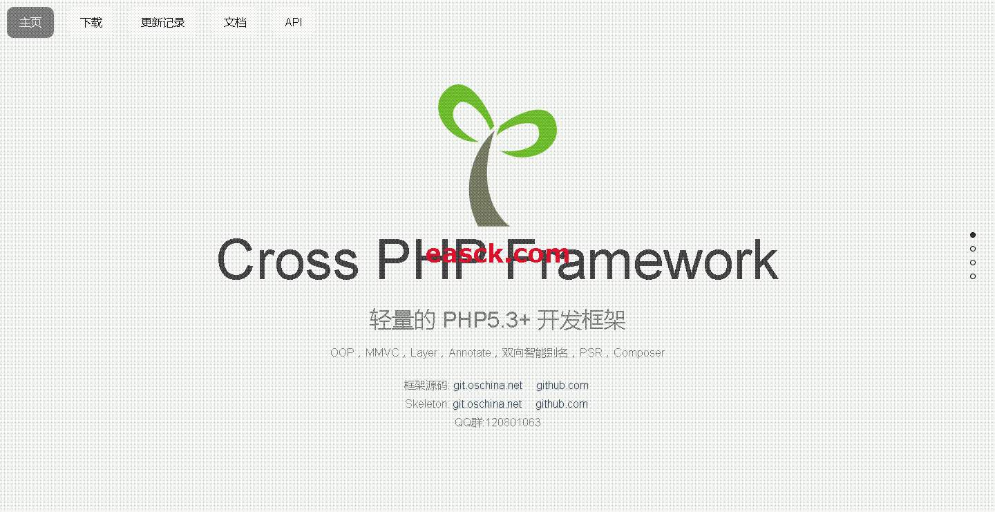 这里下载站为您提供crossphp 开发框架 v1.5.4 下载,,简洁高效,轻量易扩展的PHP5.3+ 开发框架 轻量无依赖,HMVC,注释配置,路由别名,PSR标准,layer布局 一. 需求 PHP5.3以上版本,mysql需要PDO