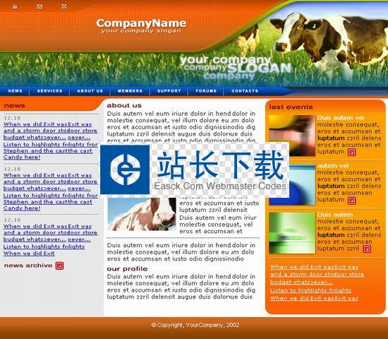 奶牛公司模板 奶牛模板 黄绿模板 html模板 动物模板