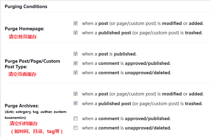 WordPress后台【插件】—【安装插件】搜索【Nginx Helper】安装即可。如下设置: