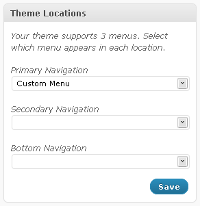 register_nav_menus(array('secondary' => 'secondary navigation'));