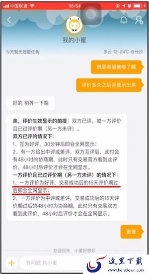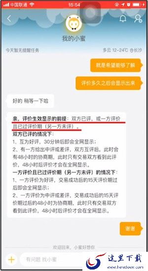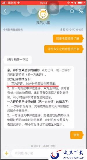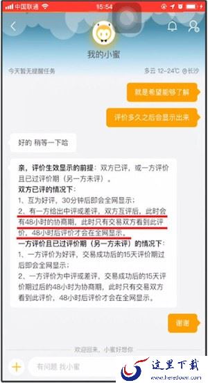 2、一方评价为中评或差评,交易成功后的15天评价期过后的48小时为协商期,此时只有交易双方看到此评价,48小时后评价才会在全网显示。