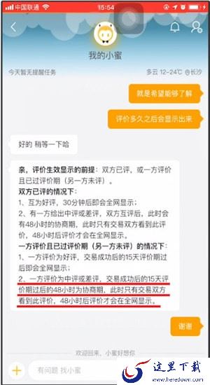 2、有一方给出中评或差评,双方互评后,此时会有48小时的协商期,此时只有交易双方看到此评价,48小时后评价才会在全网显示。